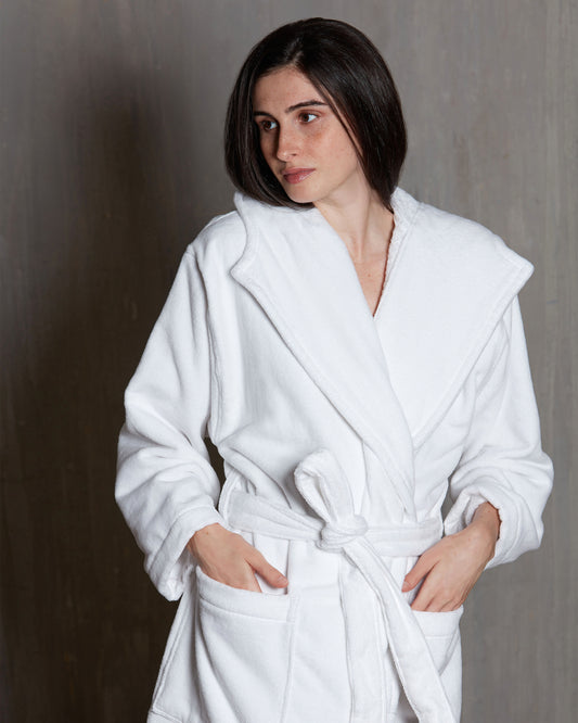 Combo Accappatoio con Cappuccio Buongiorno Bianco e Sapone