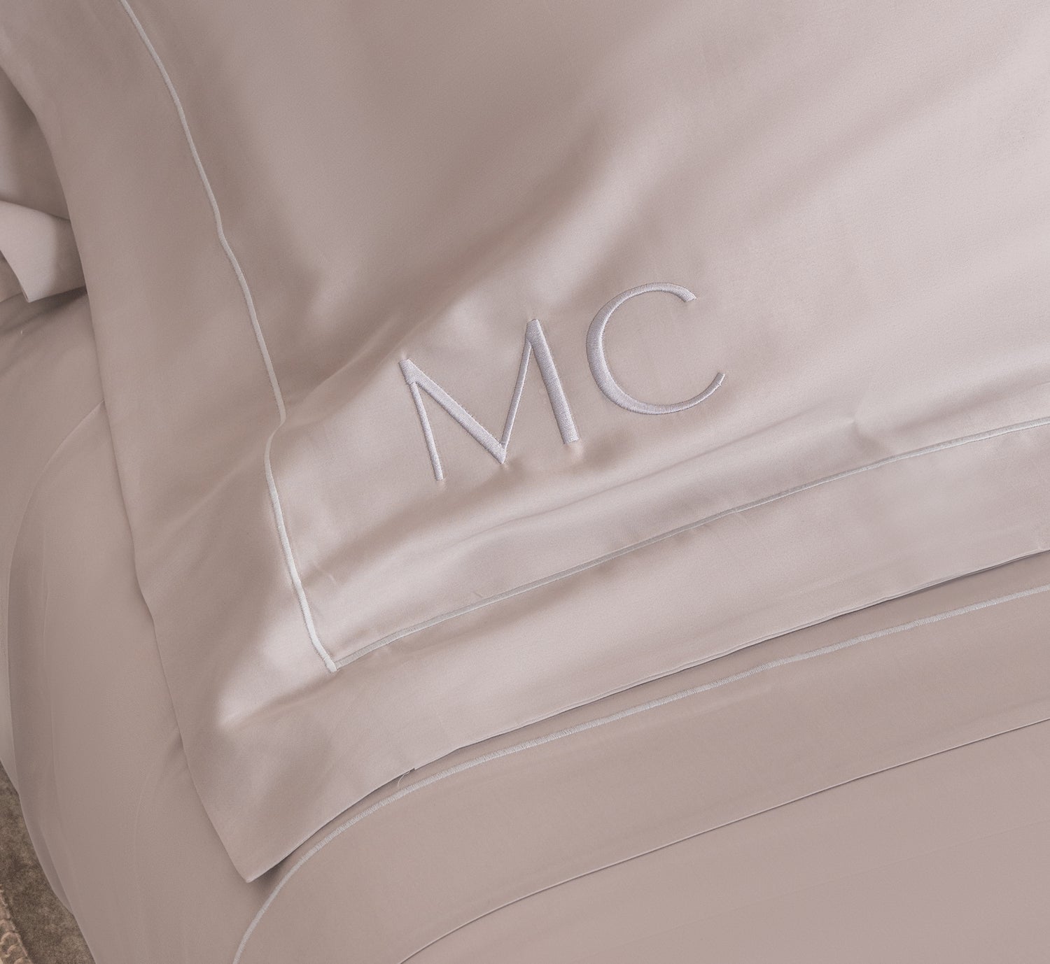 La personalizzazione è disponibile per tutti i prodotti di federe, set di lenzuola e accappatoi. Scegli il posizionamento delle tue iniziali sul lato destro o sinistro e scegli se il ricamo deve essere posizionato in basso o in alto. Le iniziali delle federe saranno angolate di conseguenza, mentre quelle degli accappatoi saranno posizionate sul petto o sulle tasche.