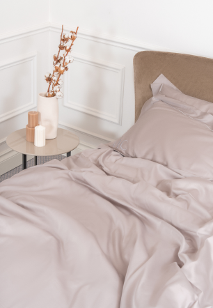 Completo Letto con Copripiumino e una Federa in pregiato Raso di Cotone certificato OEKO-TEX® and GOTS di colore Grigio. Made in Italy.
